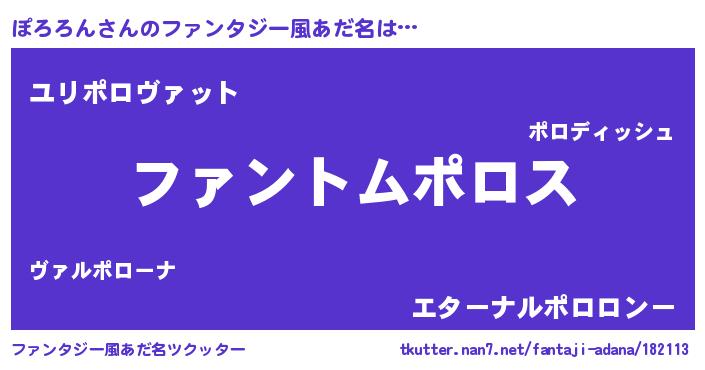 | ヒーロー風カッコイイあだ名 | 『幻影騎士ポロ』『ウルトラぽろろんマン』 |