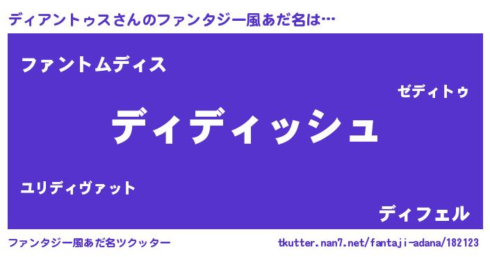 | 男性向けラノベタイトル風あだ名 | 『ディアントゥスという概念が存在しない退屈な世界 』 |