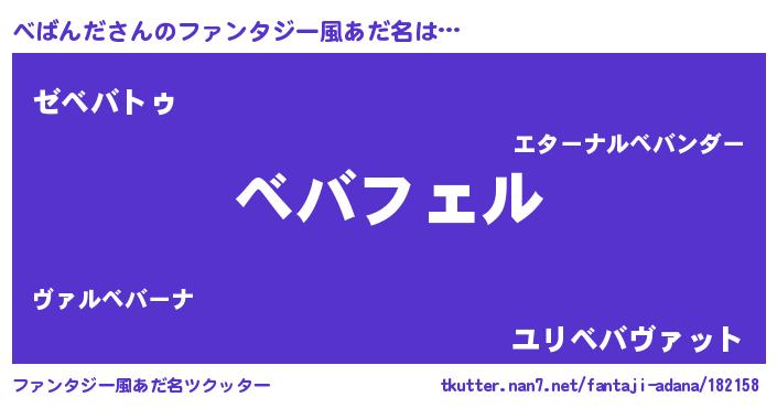| ポケモン風あだ名 | 『ベバチュウ』『ベバゴンZ』 |
