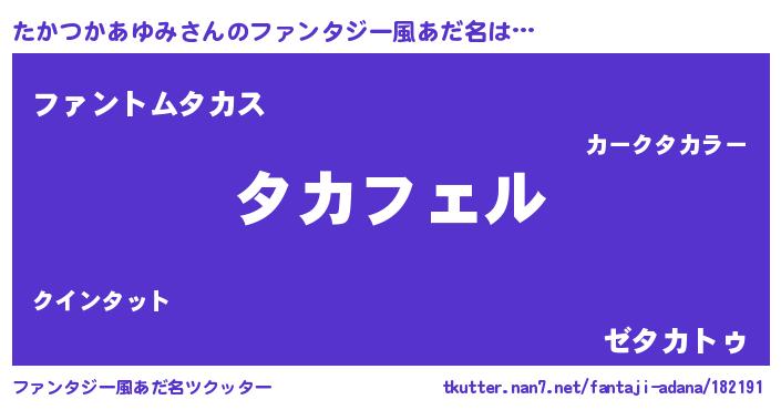| 男性向けラノベタイトル風あだ名 | 『タカツカアユミアートオンライン』 |