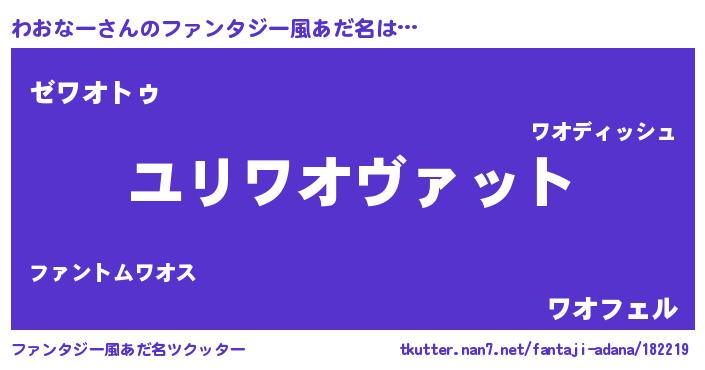 | 男性向けラノベタイトル風あだ名 | 『わおなーに滅ぼされるだけの簡単なお仕事です』 |