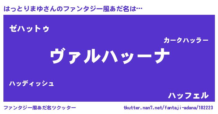 | 意味不明あだ名 | 『住所不定無職はっとりまゆ(89歳)』 |