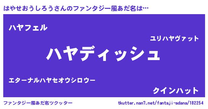 | 男性向けラノベタイトル風あだ名 | 『はやせおうしろうという概念が存在しない退屈な世界 』 |
