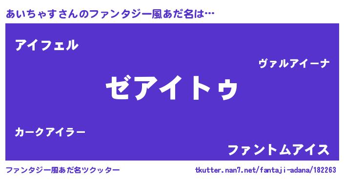 | 男性向けラノベタイトル風あだ名 | 『あいちゃすに滅ぼされるだけの簡単なお仕事です』 |