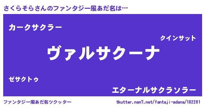 | 男性向けラノベタイトル風あだ名 | 『魔弾の王とさくらそら』 |