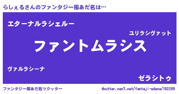 | 胡散臭い通販商品みたいなあだ名 | 『信頼と実績のサプリメント…その名も「らしぇる」』 |