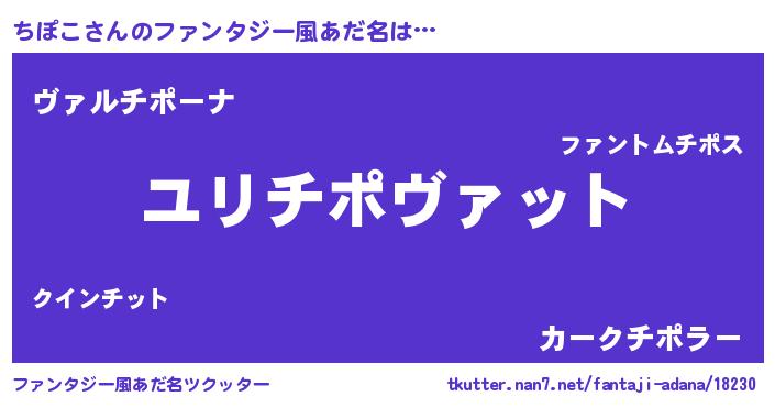 | 男性向けラノベタイトル風あだ名 | 『ちぽこ~年齢イコール彼女いない歴の魔法使い~』 |