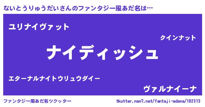 | 欧米人風あだ名 | 『ダルビッシュないとうりゅうだい』 |