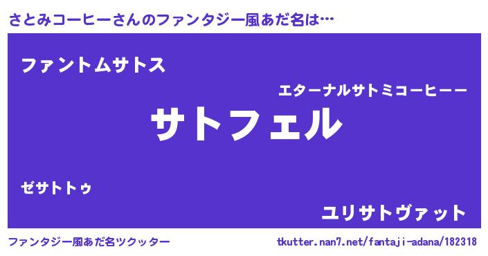 | 男性向けラノベタイトル風あだ名 | 『サトミコーヒーアートオンライン』 |
