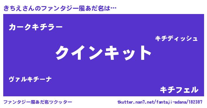 | 女子向けラノベタイトル風あだ名 | 『死神きちえの再婚』『きちえの契約王妃』 |