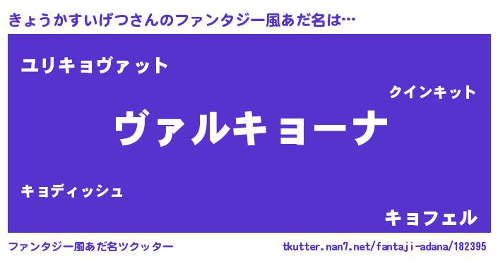 | 男性向けラノベタイトル風あだ名 | 『魔弾の王ときょうかすいげつ』 |
