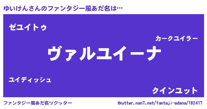 | 意味不明あだ名 | 『住所不定無職ゆいけん(1歳)』 |