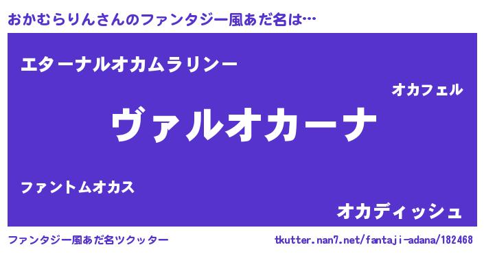| 男性向けラノベタイトル風あだ名 | 『この素晴らしい世界におかむらりんを!』 |
