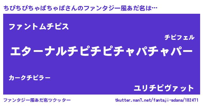 | ポケモン風あだ名 | 『チピチダネ』『ヒチピチピチャパチャパ』 |