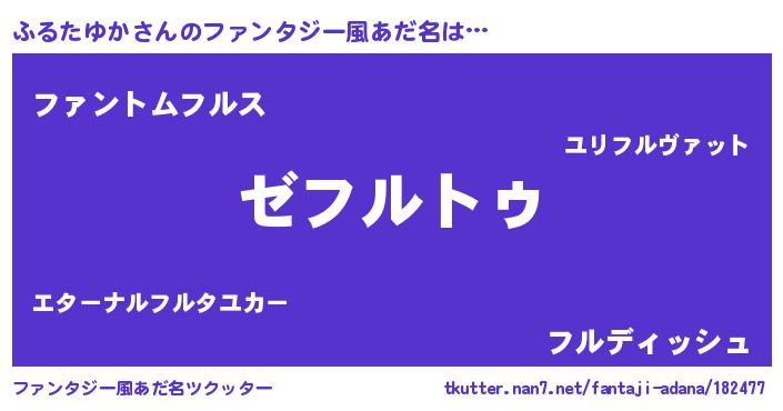 | 意味不明あだ名 | 『自称ふるたゆか』『永久保存ふるたゆか』 |