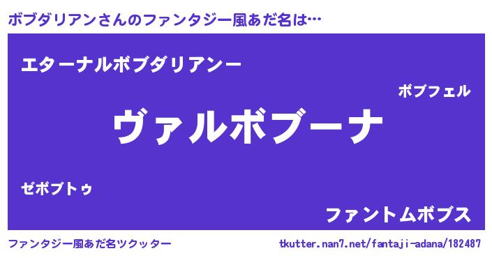 | 男性向けラノベタイトル風あだ名 | 『魔弾の王とボブダリアン』 |