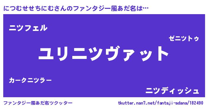 | 男性向けラノベタイトル風あだ名 | 『ニツムセセチニムスレイヤー』 |