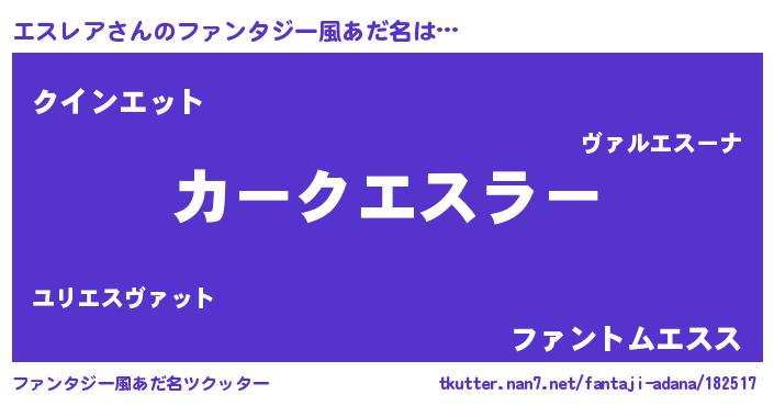 | 欧米人風あだ名 | 『エスレア・ステッグマイヤー』 |