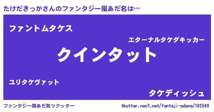 | ヘコむあだ名 | 『たけっちょ』『たけだきっか(苦笑)』 |