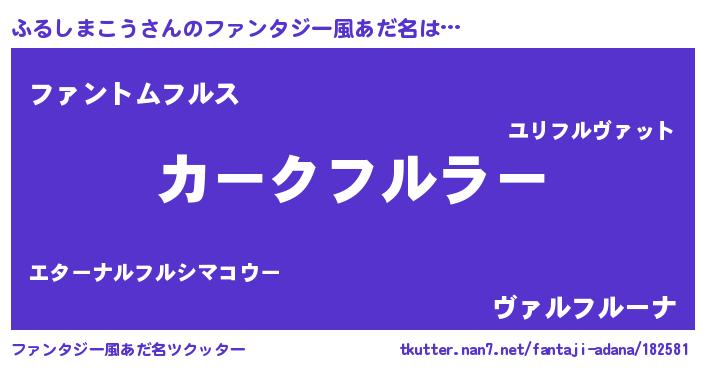 | 男性向けラノベタイトル風あだ名 | 『うちのふるしまこうが世界を掌握している!』 |