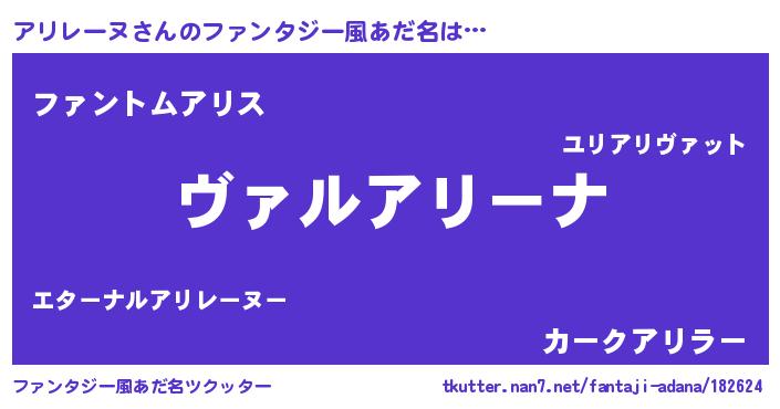 | 男性向けラノベタイトル風あだ名 | 『魔弾の王とアリレーヌ』 |