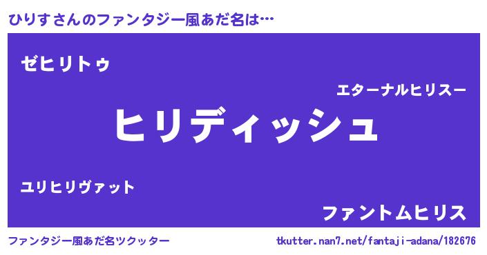 | 男性向けラノベタイトル風あだ名 | 『ひりすという概念が存在しない退屈な世界 』 |