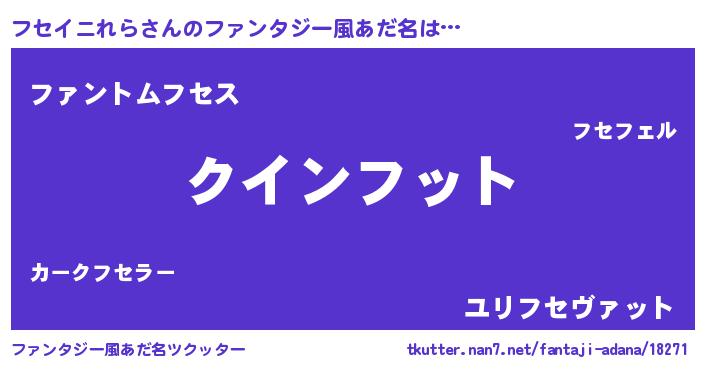 | ポケモン風あだ名 | 『フックウザ』『ヒフセイニレラ』 |