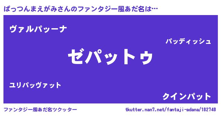 | 欧米人風あだ名 | 『アンジェラ・ぱっつんまえがみ』 |