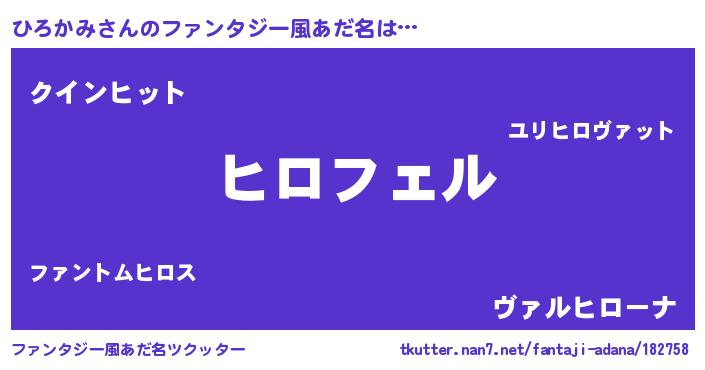| 男性向けラノベタイトル風あだ名 | 『ひろかみの憂鬱』『魔弾の王とひろかみ』 |