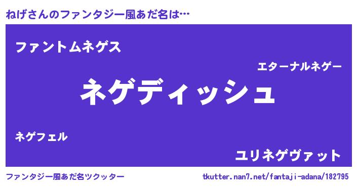| 男性向けラノベタイトル風あだ名 | 『ねげという概念が存在しない退屈な世界 』 |