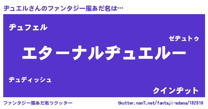 | 意味不明あだ名 | 『ヂュエルフォーエバー』『自称ヂュエル』 |