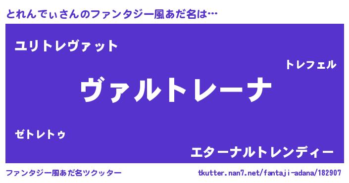| 男性向けラノベタイトル風あだ名 | 『この素晴らしい世界にとれんでぃを!』 |