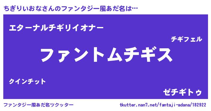 | 男性向けラノベタイトル風あだ名 | 『ちぎりいおなの嫁は女の子じゃないと思った?』 |