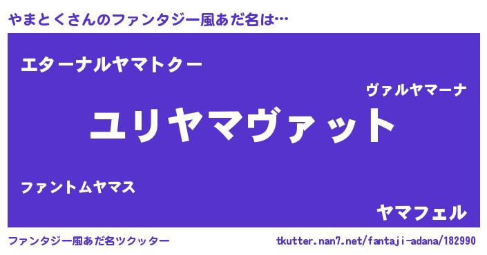 | 肩書あだ名 | 『やまとく中将』『やまとく国家主席』 |