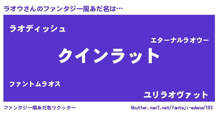 | 男性向けラノベタイトル風あだ名 | 『ノーゲーム・ノーラオウ』 |