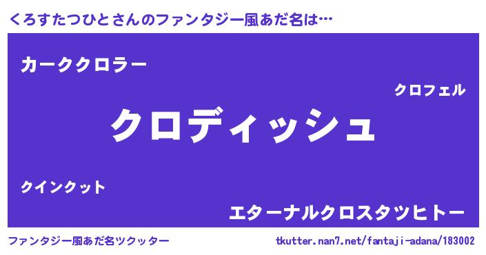| 女子向けラノベタイトル風あだ名 | 『異世界で失敗しない100のくろすたつひと』 |