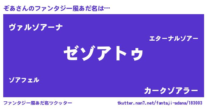 | ヒーロー風カッコイイあだ名 | 『超時空戦士ゾア』『仮面ゾアダー』 |