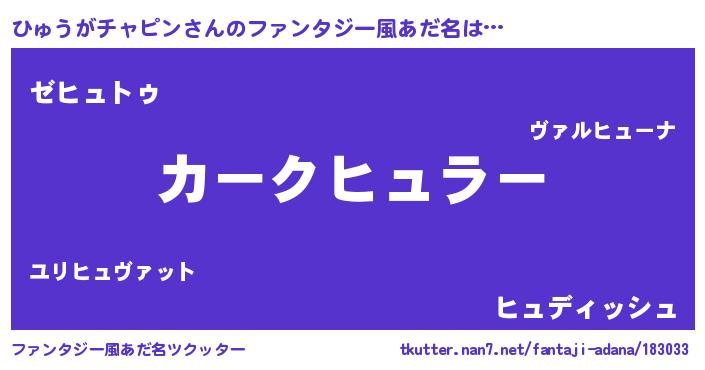 | ヒーロー風カッコイイあだ名 | 『最強戦士ヒュウガチャピン』 |