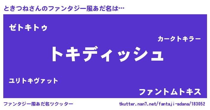 | ヘコむあだ名 | 『ときつね(震え声)』『ときを』 |