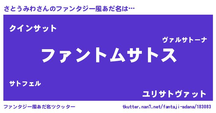 | ヒーロー風カッコイイあだ名 | 『幻影騎士サト』『慈愛の使者さとうみわ』 |