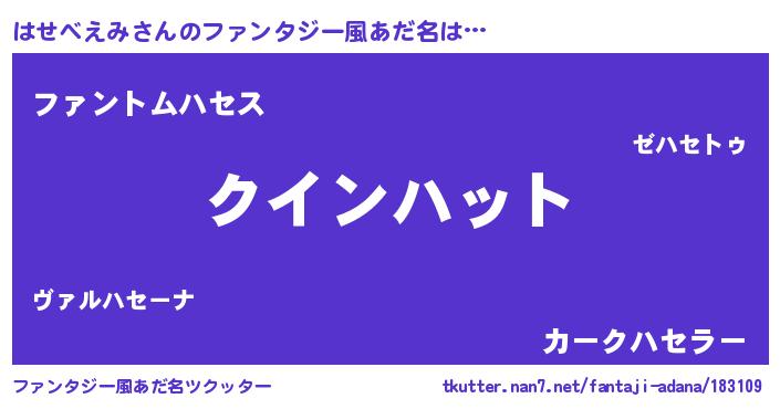| 女子向けラノベタイトル風あだ名 | 『はせべえみ夫妻のなれそめ』 |