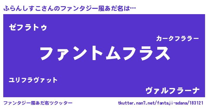 | ヘコむあだ名 | 『ふら太郎』『ふらんしすこ(小並感)』 |