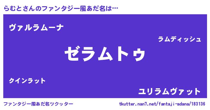 | 男性向けラノベタイトル風あだ名 | 『魔法科高校のらむと』 |