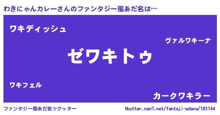| 女子向けラノベタイトル風あだ名 | 『わきにゃんカレーなんてお断りですっ。』 |