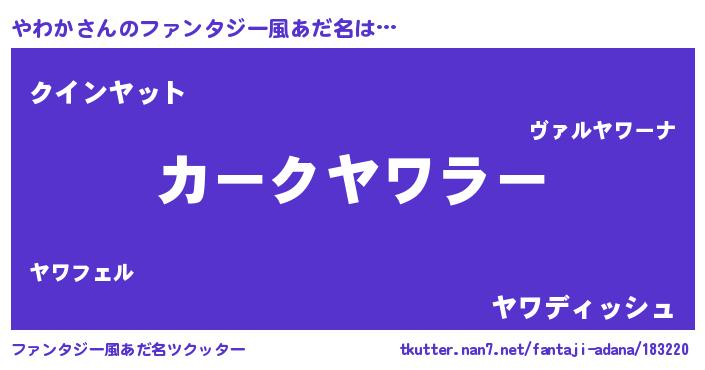 | 欧米人風あだ名 | 『アンジェラ・やわか』『ダニエルやわか』 |