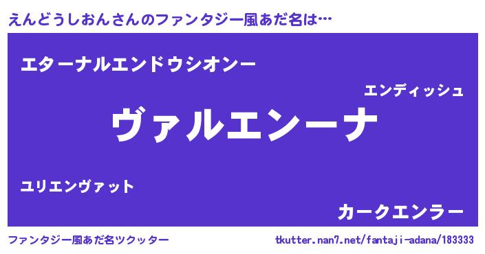| 意味不明あだ名 | 『住所不定無職えんどうしおん(89歳)』 |