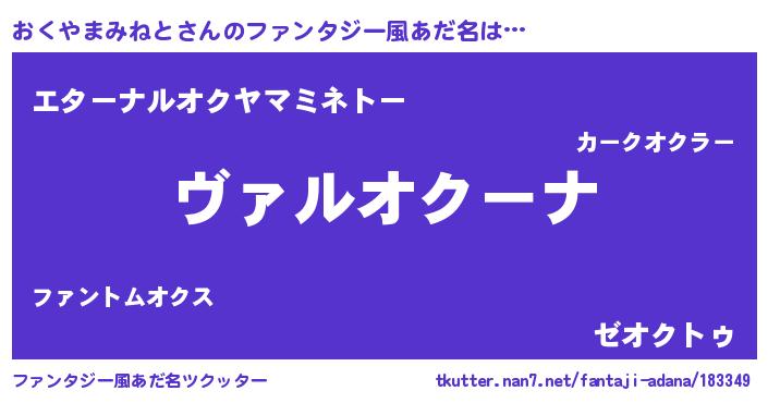 | 男性向けラノベタイトル風あだ名 | 『魔弾の王とおくやまみねと』 |