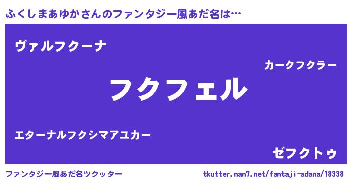 | 男性向けラノベタイトル風あだ名 | 『ふくしまあゆかの憂鬱』 |