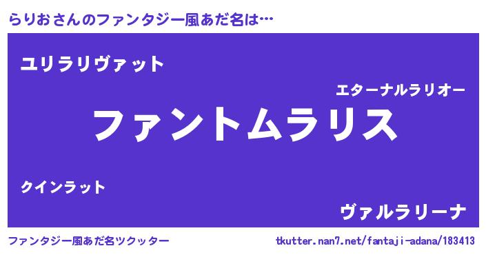 | ヘコむあだ名 | 『らりっ子』『豆乳』『らりお(笑)』 |
