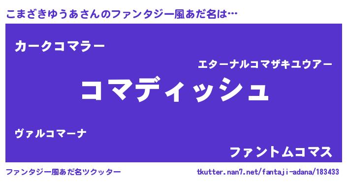 | 意味不明あだ名 | 『永久保存こまざきゆうあ』 |